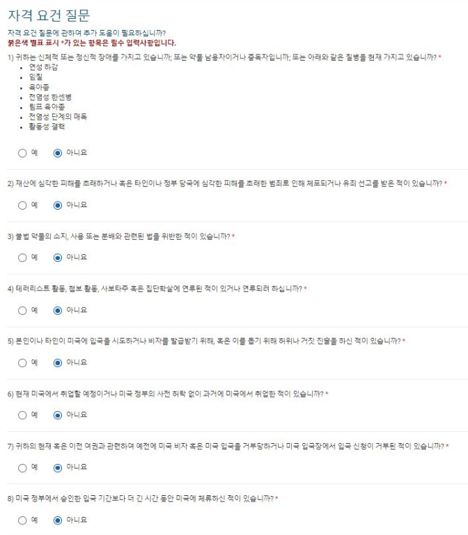 만약에 하나라도 '예'라고 한다면 아마 발급이 안되실수도 있을거 같아요 ㅠㅠ